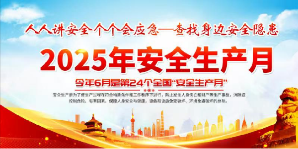 今年6月是第24個全國“安全生產(chǎn)月”,公司緊扣“人人講安全、個個會應急——查找身邊安全隱患”的主題,結(jié)合企業(yè)生產(chǎn)經(jīng)營實際情況,周密部署、扎實推進安全生產(chǎn)月系列活動。